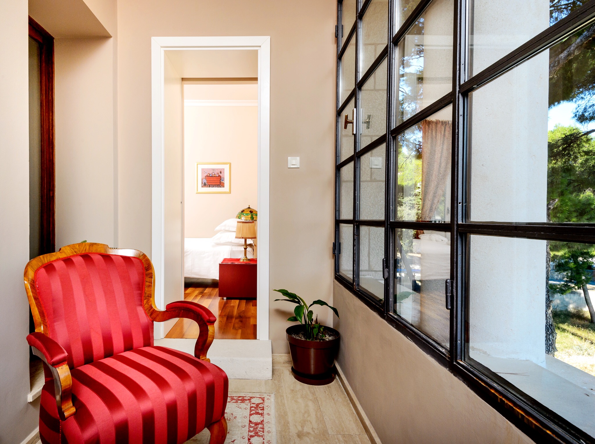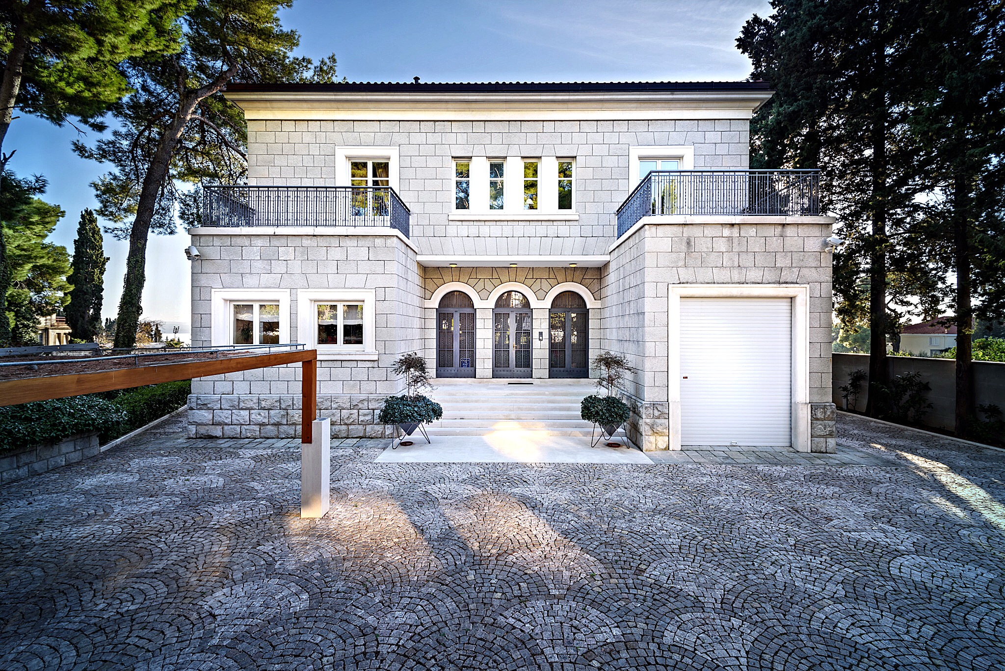 Upon entering the house on the 1st floor, a grand entrance hall opens up to the main living area of the house with an impressive terrace overlooking the views beyond. The second floor consists of the 4 main bedrooms, one of which the master suite. Private terraces are surrounding this floor to hide out and relax. The separate living quarters is situated on the ground floor which opens up to the main tarrace/garden overlooking the large pool towards the Adriatic.