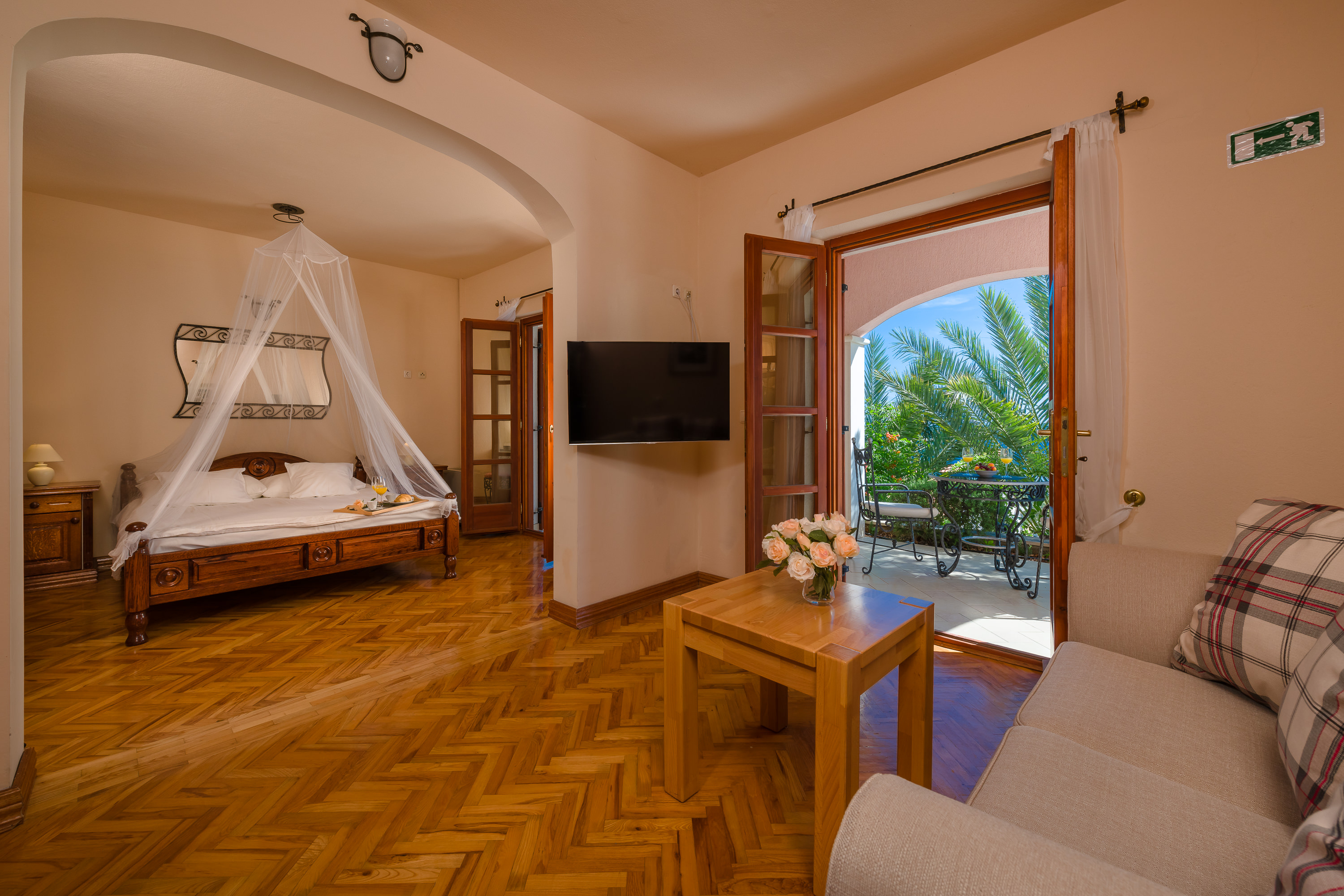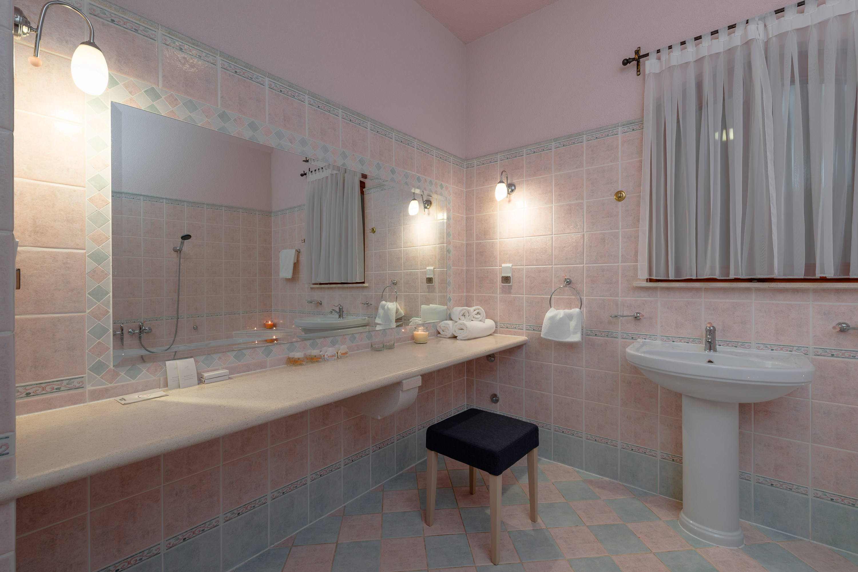 ● Rock (Executive suite): a comfortable bedroom with a king-size bed, a dressing room, a living room, a balcony. The bathroom is equipped with bathtub and shower and also offers sea view.