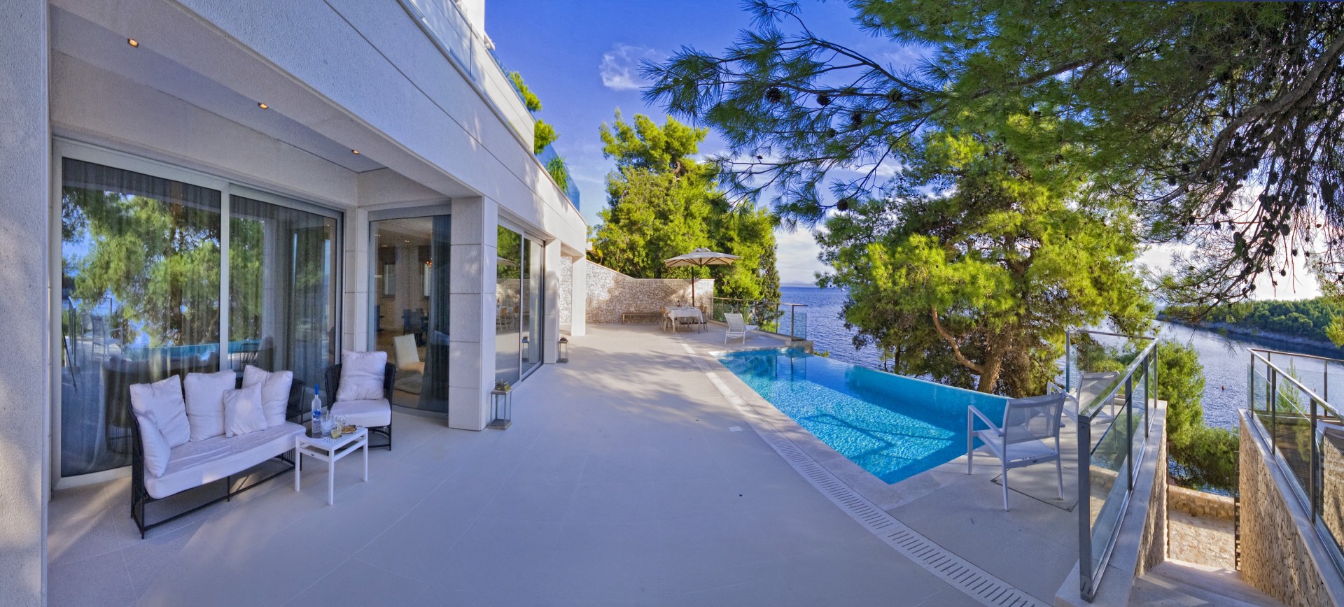 In a secluded bay is the superb Villa Tiha, recently built of the island’s famous white stone, with elegant proportions and finely detailed craftsmanship that put it in a class of its own. You can choose your spot for toasting in the sun, lazing in the shade of the pine trees, soaking in the Jacuzzi or enjoying a candle-lit dinner under the stars. From the main terrace you can make your way down to the water’s edge for a dip, relax beside it or try out the kayaks – or set off in the speedboat to discover some of the other treasures that await you on this fascinating island.